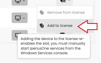 Además, los servicios de Iperius One se detendrán y, para volver a asociar el dispositivo a la licencia, será necesario reiniciar manualmente dichos servicios.
