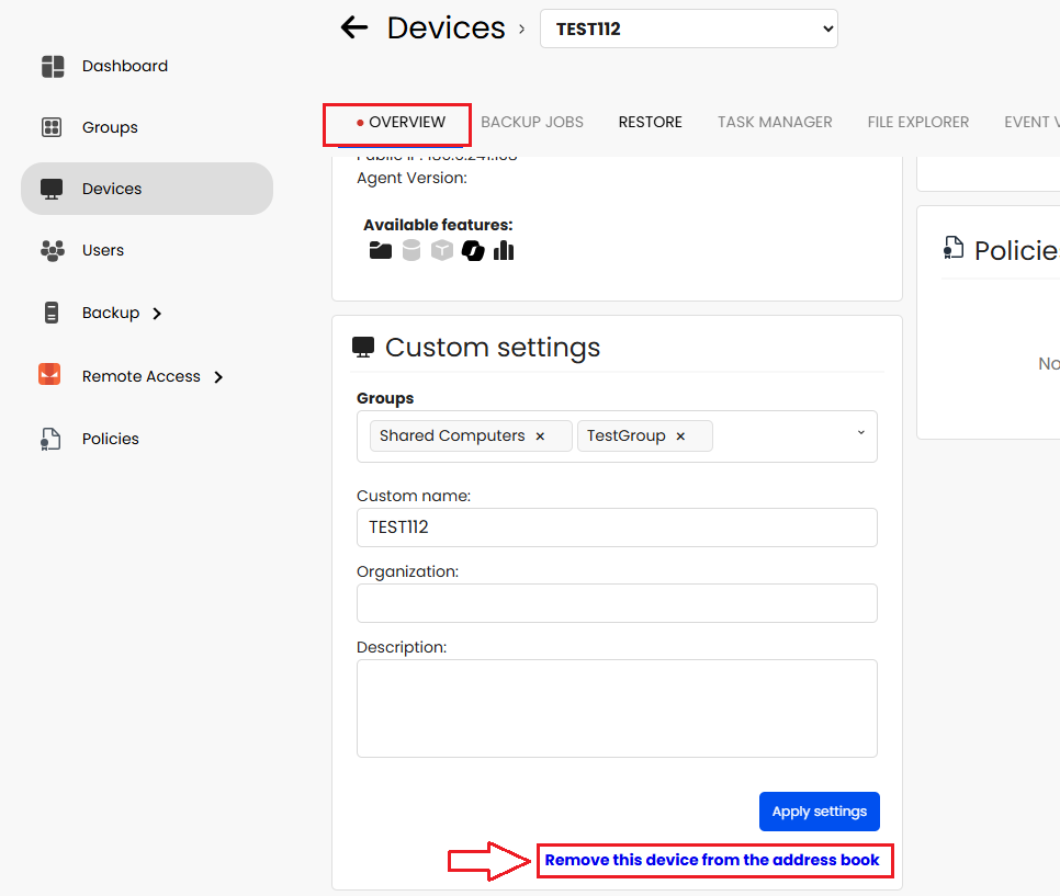 Nota importante: esta operación libera un slot de la licencia de Iperius One, pero no elimina el ordenador de la Agenda de Iperius Remote. Si deseas eliminar el ordenador también de la Agenda de Iperius Remote, debes ir a la sección Panorama y hacer clic específicamente en esta opción: