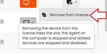 Es posible en cualquier momento eliminar / desasociar el dispositivo de la licencia One desde el menú desplegable: