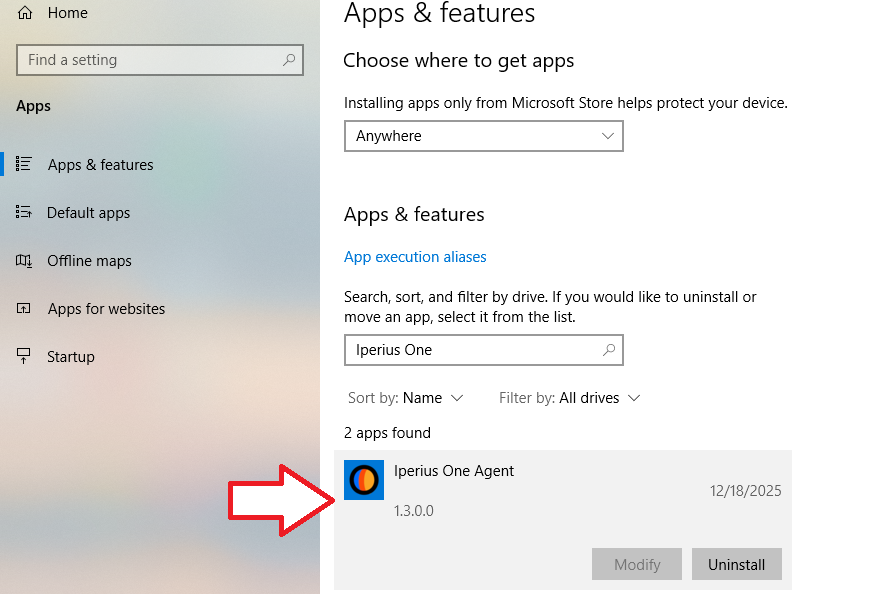 Para desinstalar completamente Iperius One del dispositivo, se debe seguir el procedimiento estándar de Windows para desinstalar un programa: