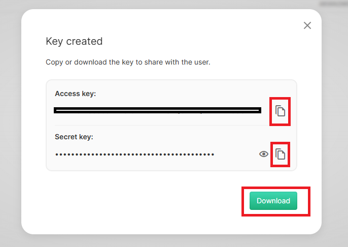 ID de clave de acceso : Su clave de acceso a la API de MEGA