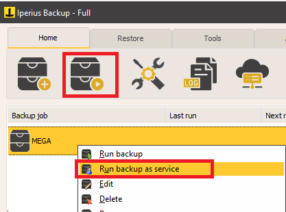 - Después de guardar el proceso de copia de seguridad, puede ejecutarlo inmediatamente para una prueba: